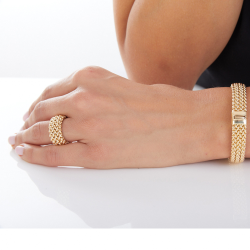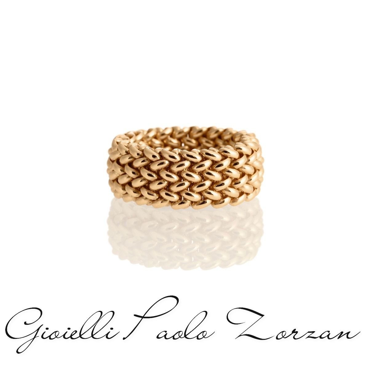 Anello da donna in argento dorato a fascia, maglia Chicco di riso Unoaaerre.