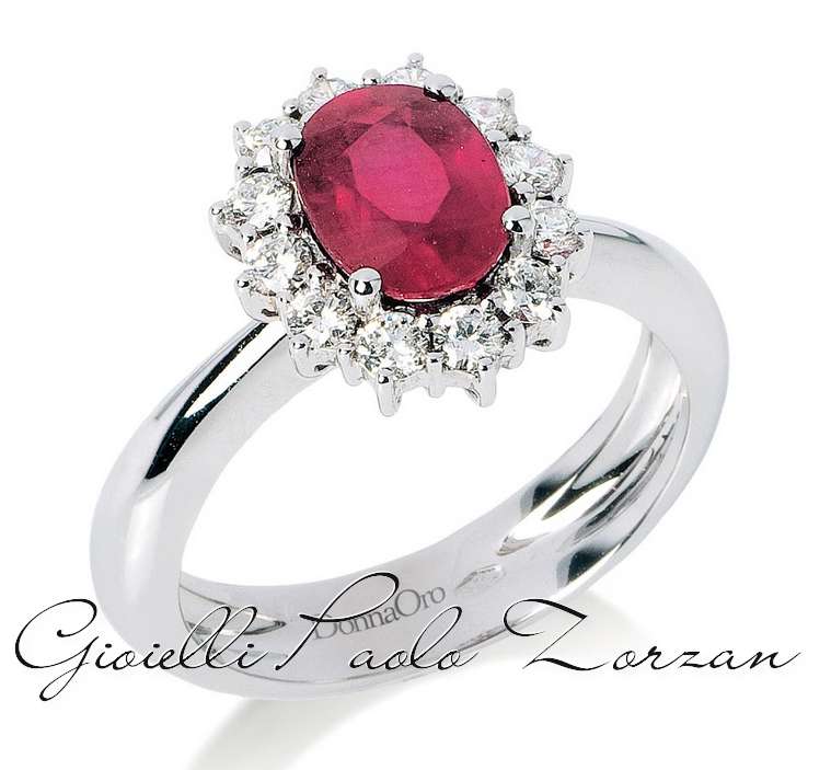 Anello DonnaOro in oro bianco diamanti e rubino DGA0036ZR.36
