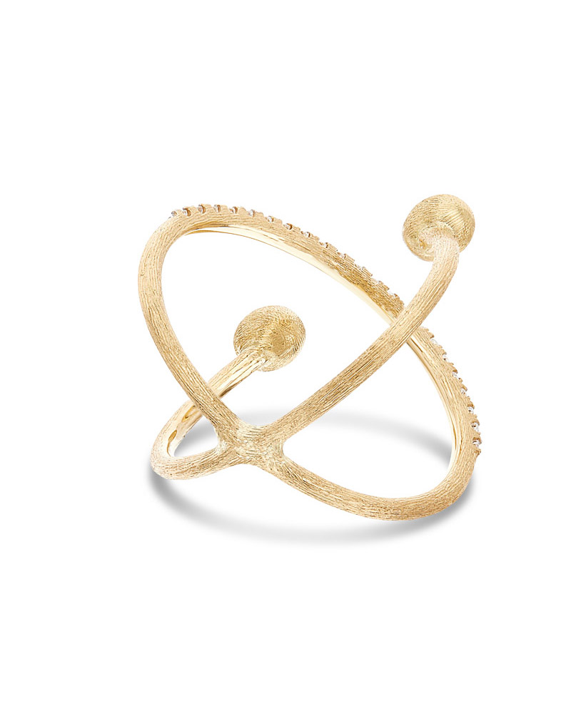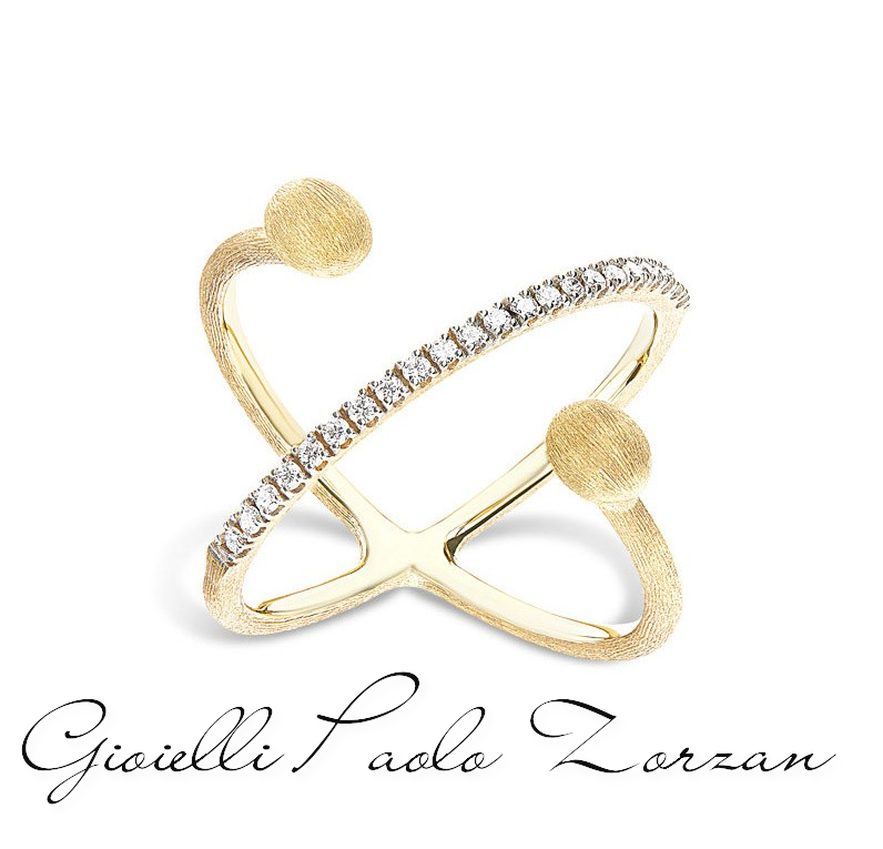 Un’ode all’eleganza che forza le regole, che riscrive con raffinatezza forme e dettagli. I diamanti e l’oro giallo 18kt si rincorrono in questo sofisticato anello, avvolgendo teneramente il dito e facendolo scintillare.