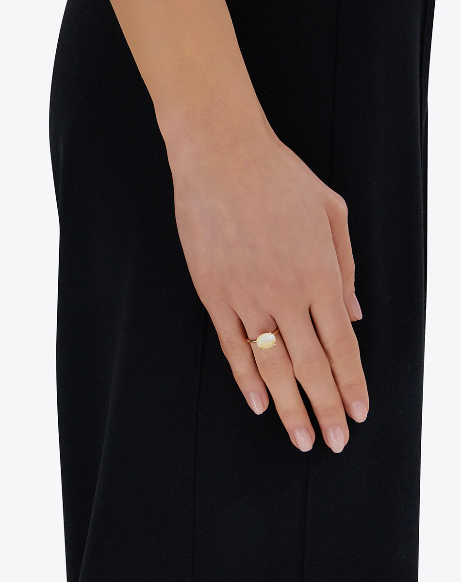 Come i paesaggi mozzafiato dei Lençóis Maranhenses, questo anello celebra l’incontro tra luce e materia. L’oro lucido 18 carati avvolge una doublette di quarzo rutilato e madreperla, attraversata da affascinanti rutili interni: “perfettamente imperfetti” e squisitamente irregolari, rendono ogni gioiello irripetibile, come le tracce del vento sulla sabbia.