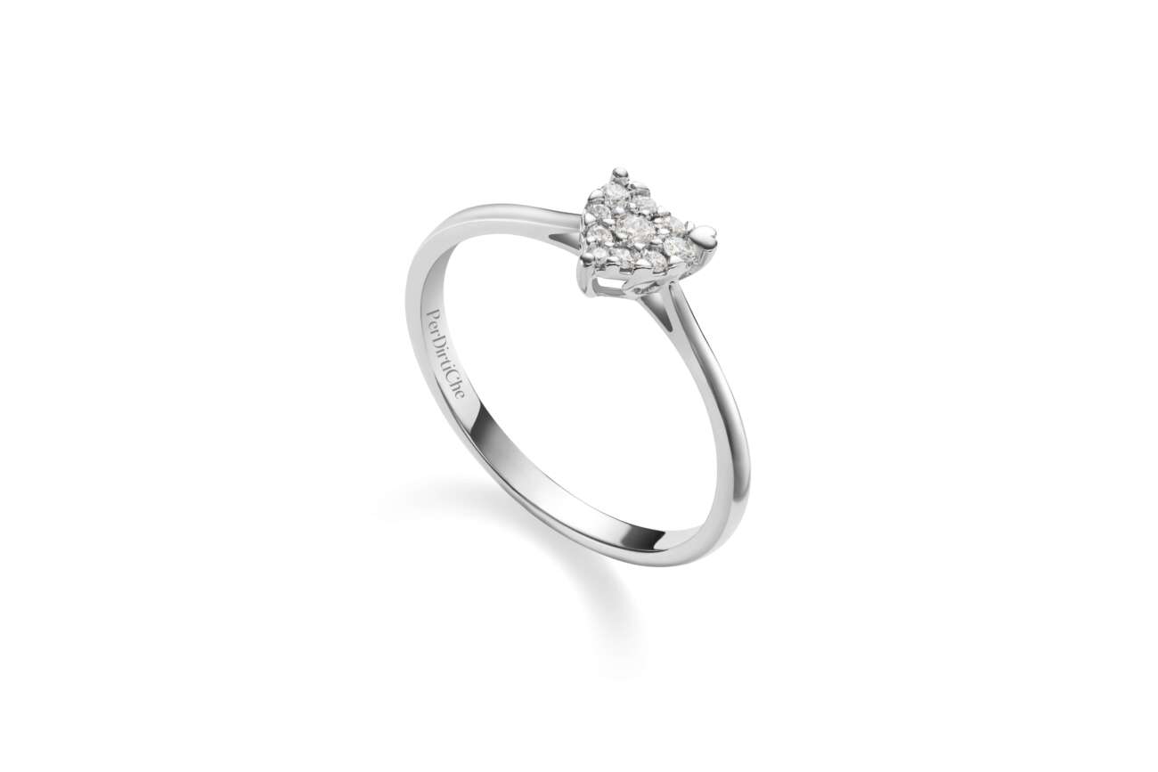 Anello solitario in oro bianco 18kt con griffe a cuore