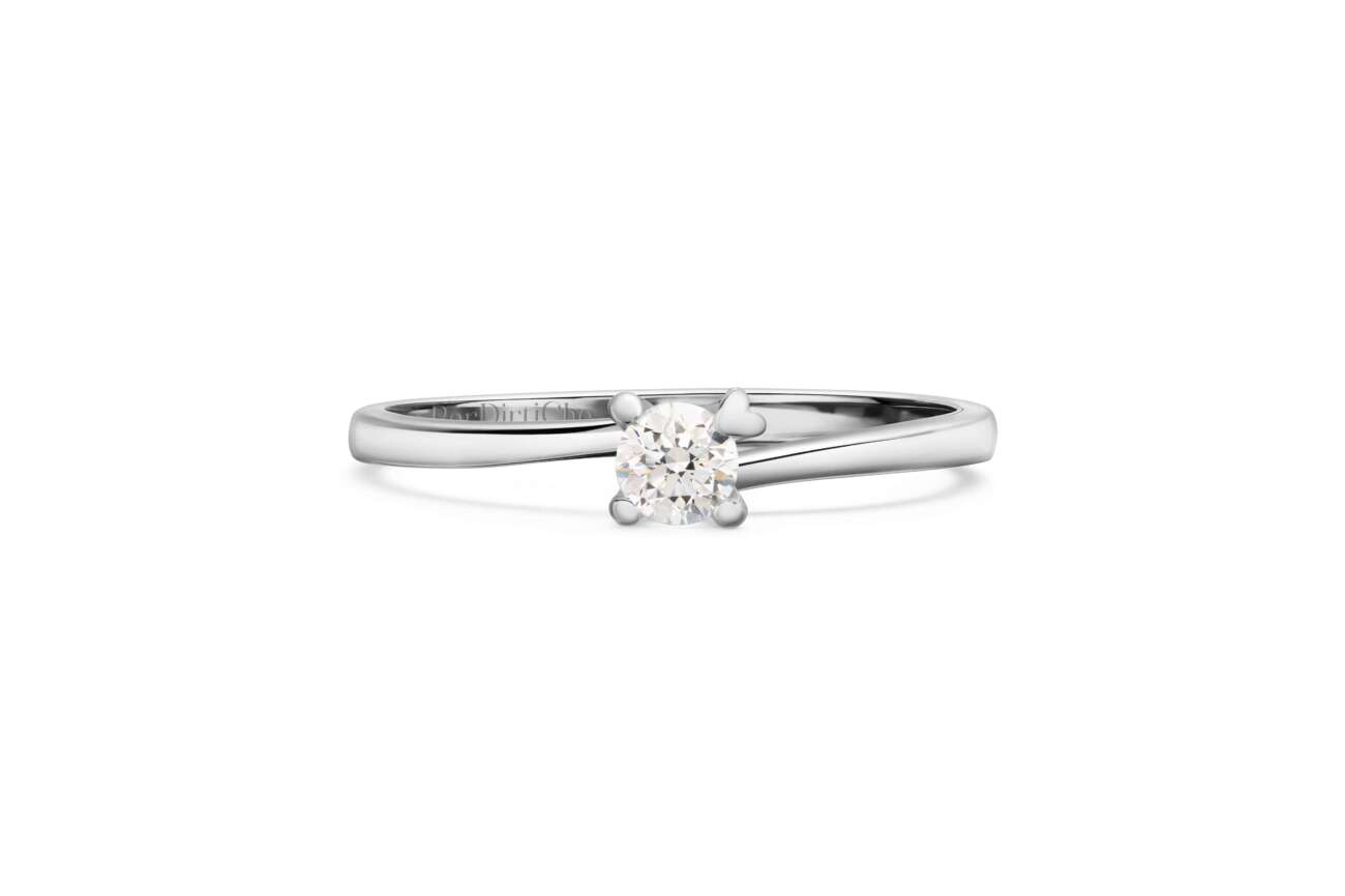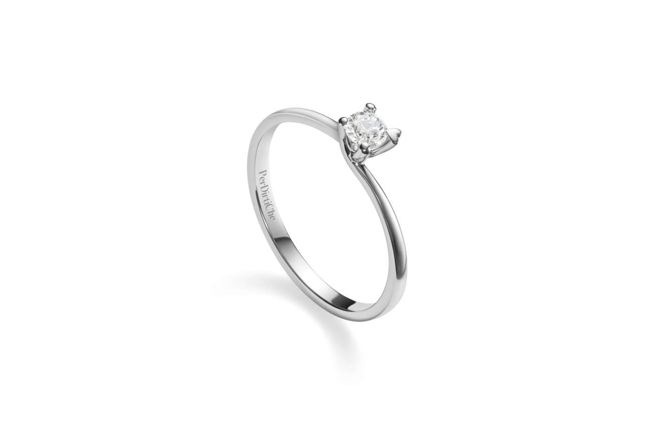 Anello solitario in oro bianco 18kt con griffe a cuore
