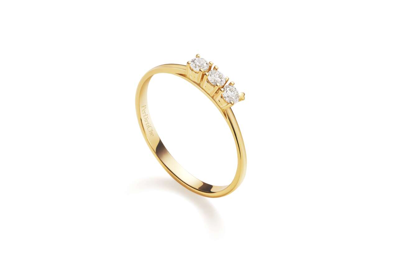 Anello trilogy in oro giallo 18kt con griffe a cuore