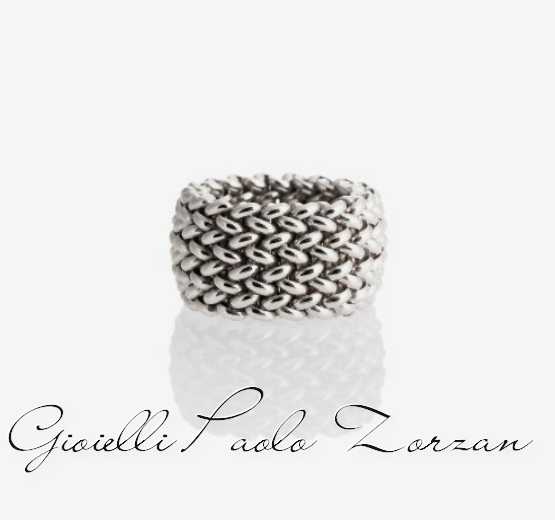Anello da donna in argento a fascia media, maglia Chicco di riso.