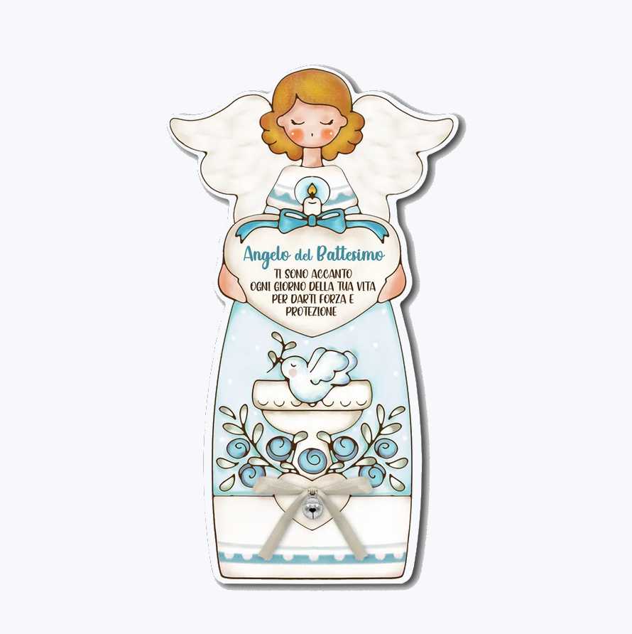 Il nostro angelo in legno laccato con stampa colorata è sempre accanto a te e ti offre doni speciali.