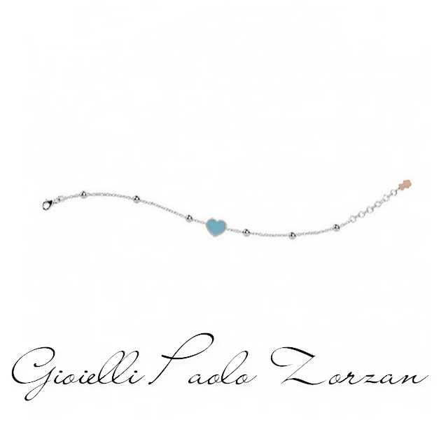 Braccialetto da bimba realizzato in argento 925% con elemento a forma di cuore azzurro centrale.