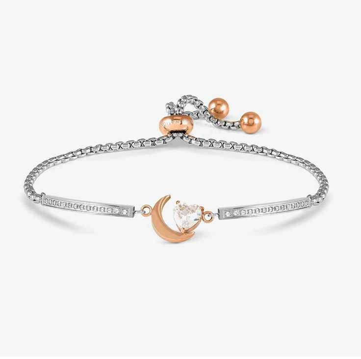 Bracciale in acciaio 316/304 anallergico luna con pietre Cubic Zirconia bianchi. Disponibile con rivestimento superficiale in PVD giallo, rosa oppure acciaio. Per essere importanti non serve essere a capo di un regno: regala questo gioiello alla regina del tuo cuore.