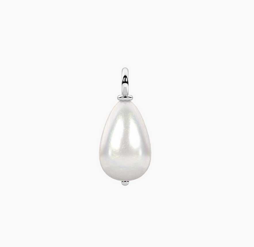 Ciondolo in acciaio con goccia in perla conchiglia.