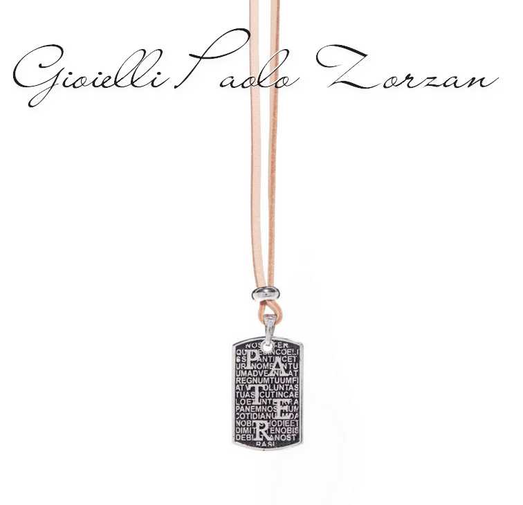 Collana vera pelle con elemento e chiusura a moschettone in Argento 925 colori disponibili Beige/Rodio – Blu/Dorato – Verde/Dorato