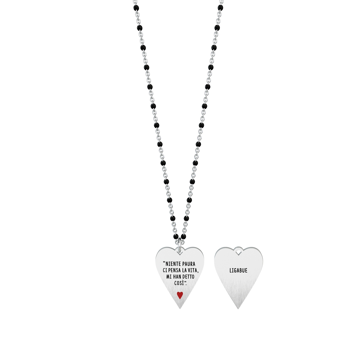 Collana donna kidult, 751142, collezione ligabue collection, in acciaio e smalto con pendente cuore, scritta: “niente paura ci pensa la vita, mi han detto così”