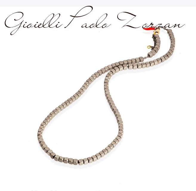 Collana da uomo in titanio, oro rosso 9 KT e charms piccolo smaltato rosso. Una serie di cubi piccoli in titanio compongono la struttura principale della collana. Una catenina in titanio attraversa l’intera sezione dei cubi cosi la collana risulta resistente e mobile. La collana termina con un anellino in oro rosso 9 kt e una chiusura a gancio in oro rosso 9 kt e il charms rosso pendente che donano un tocco di preziosità. Il simbolo del marchio MANO|J.,il diamante black da 1 punto si trova incassato ad uno degli ultimi cubi. Facilmente indossabile.