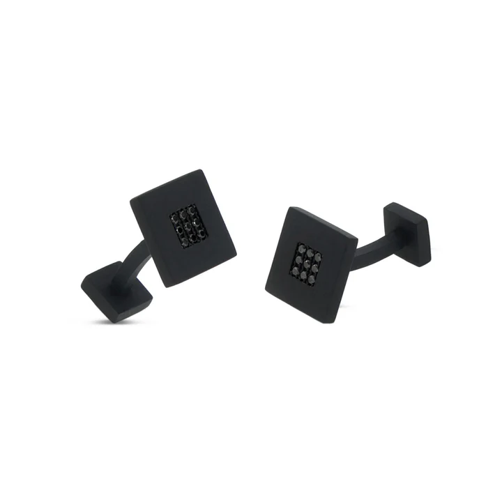 Paio gemelli in titanio con diamanti black. Di forma lineare e moderna, questo paio di gemelli è costituito da due elementi quadrati sulla superficie dei quali sono incasonati in totale 18 diamanti black. Nella parte sottostante di ognuno appare il simbolo del marchio MANO|J.: Il diamante black da 1 punto pari ad una caratura totale di 2 punti. Un prezioso, affascinante ed elegante accessorio.