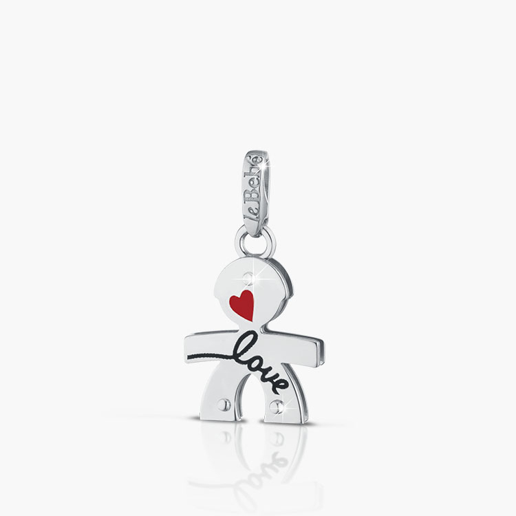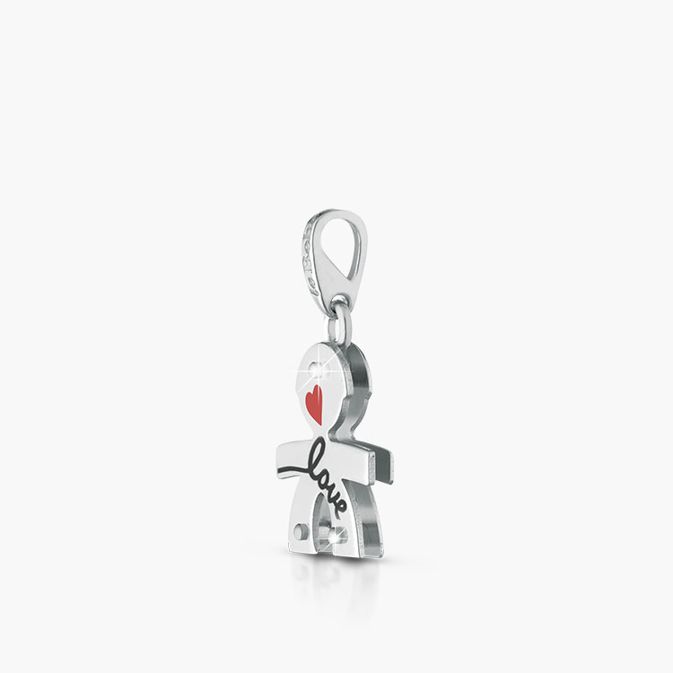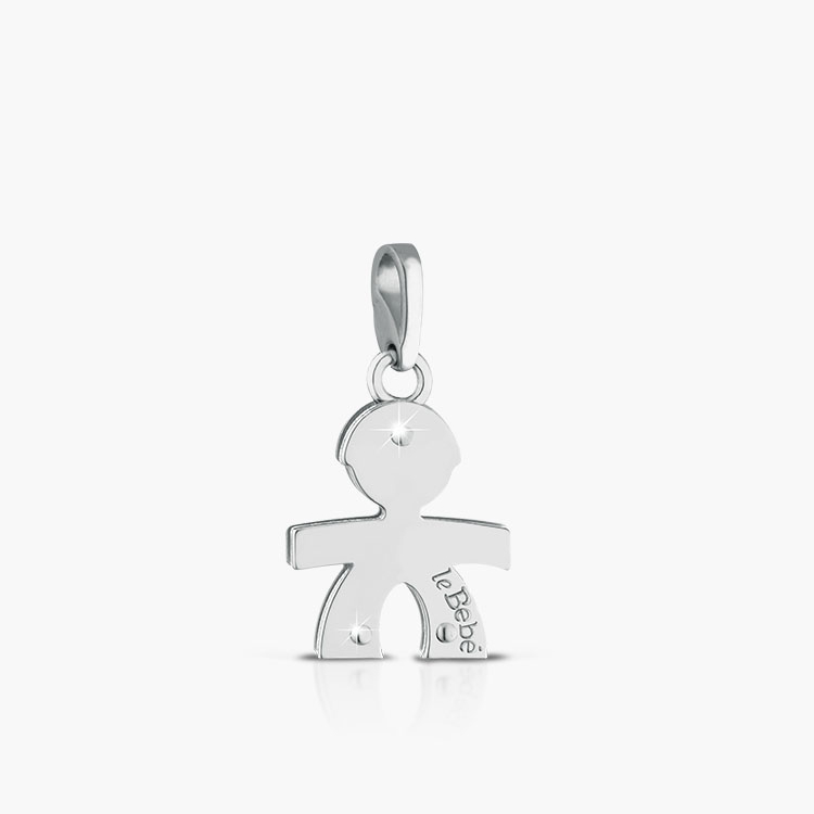 Ciondolo Cucciolo bimbo in oro bianco con grafismi smaltati.