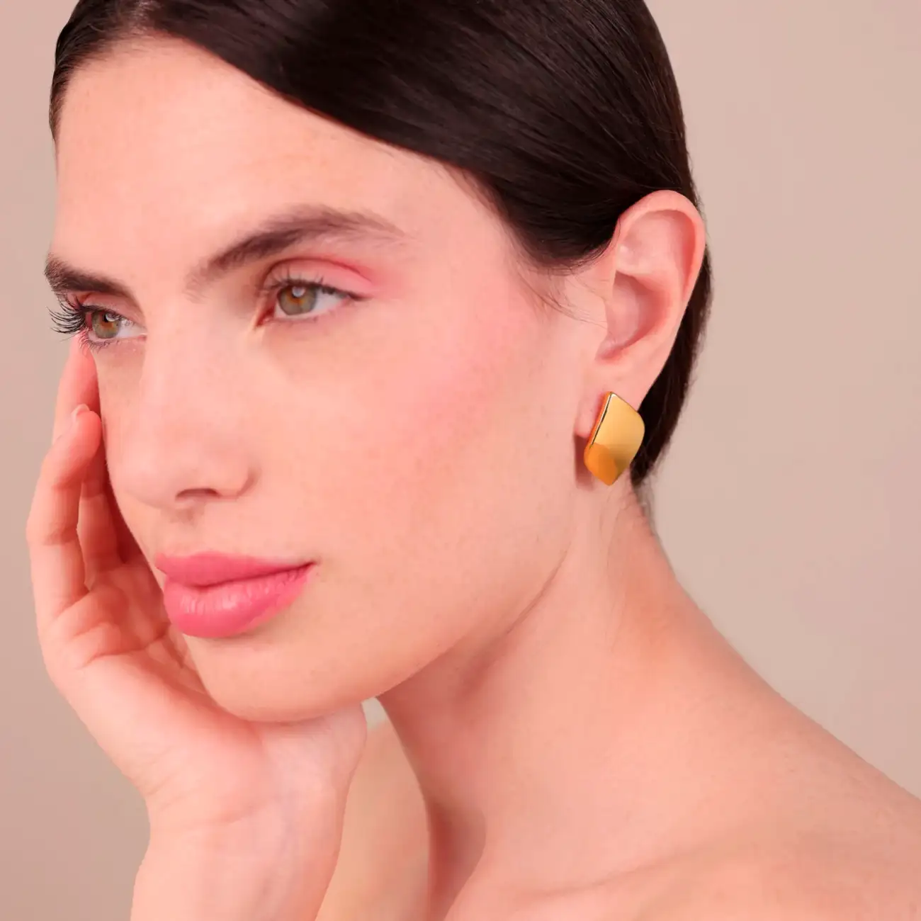 Orecchini a lobo Bronzallure in Golden Rosé, ispirati alla forma delicata di una foglia, con finitura lucida che riflette la luce con naturale eleganza.