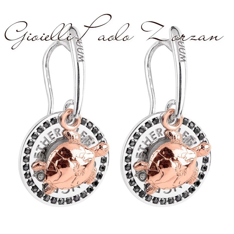 ORECCHINI GAIA in Argento Rodiato, Spinelli Neri e tartaruga GAIA in oro Rosa 9kt GAIAEM9SC0R