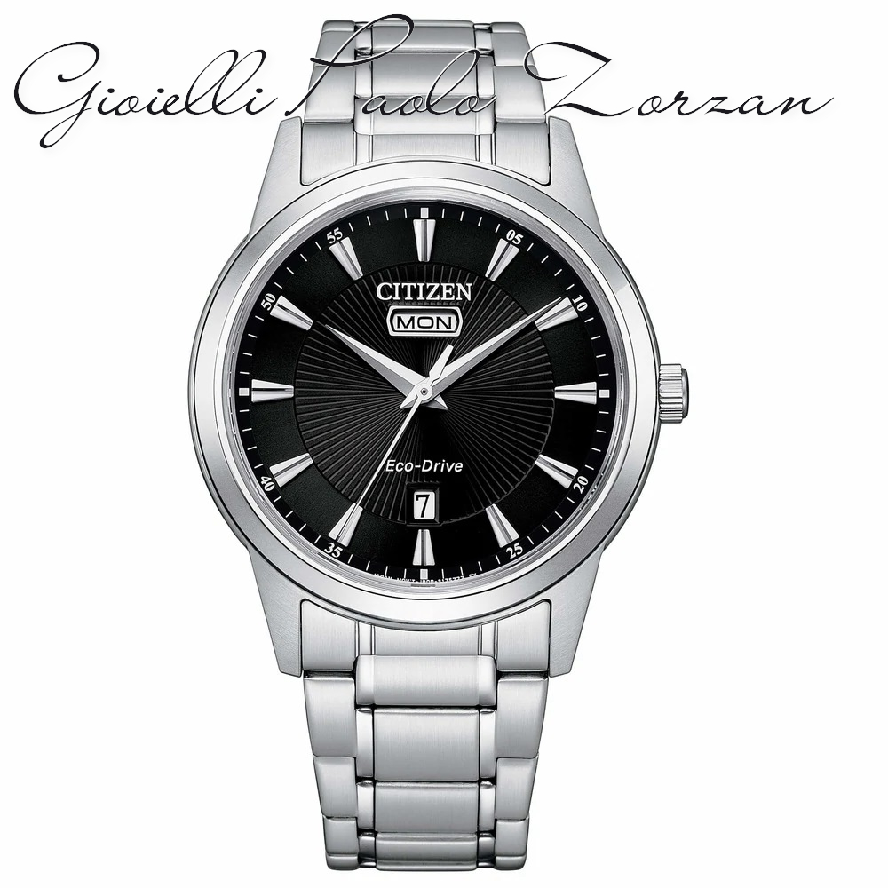 Orologio uomo citizen, aw0100-86e, collezione classic, movimento eco-drive, solo tempo, cassa in acciaio 40mm, quadrante nero con datario, bracciale in acciaio, resistenza all’acqua 5atm