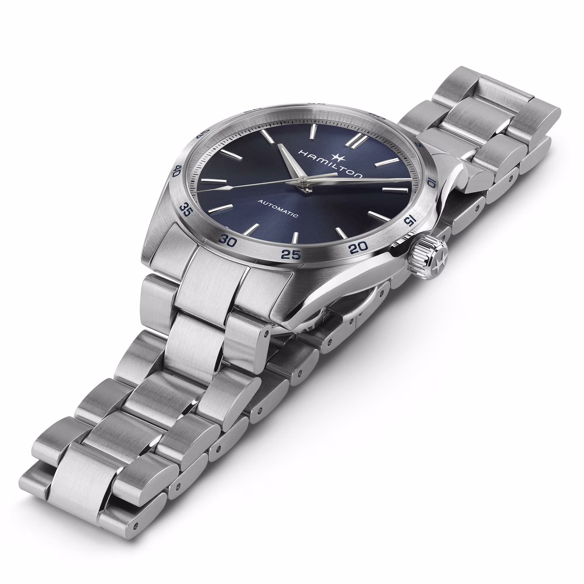Pensata per chi ama l’equilibrio tra stile e funzionalità, la linea Jazzmaster Performer offre un look sporty-chic accattivante. Animato dal movimento automatico H-10 con riserva di carica fino a 80 ore, questo Jazzmaster Performer Automatic presenta una cassa in acciaio da 38 mm messa in risalto da un sobrio quadrante blu scuro e un bracciale in acciaio dallo stile deciso.