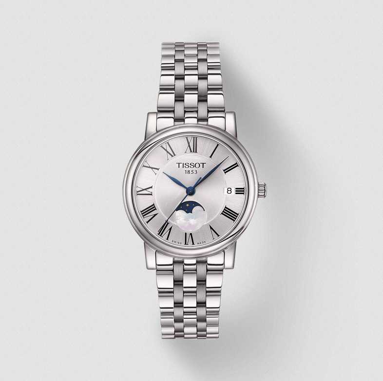 Il Tissot Carson, un capolavoro di orologeria da indossare ovunque e in ogni occasione, è il compagno ideale per rendere ogni momento un momento clou della tua vita. Con il suo design elegante, il gusto sicuro e le indicazioni delle fasi lunari, la nuova collezione Tissot Carson Premium Lady Moonphase colpisce sempre nel segno.