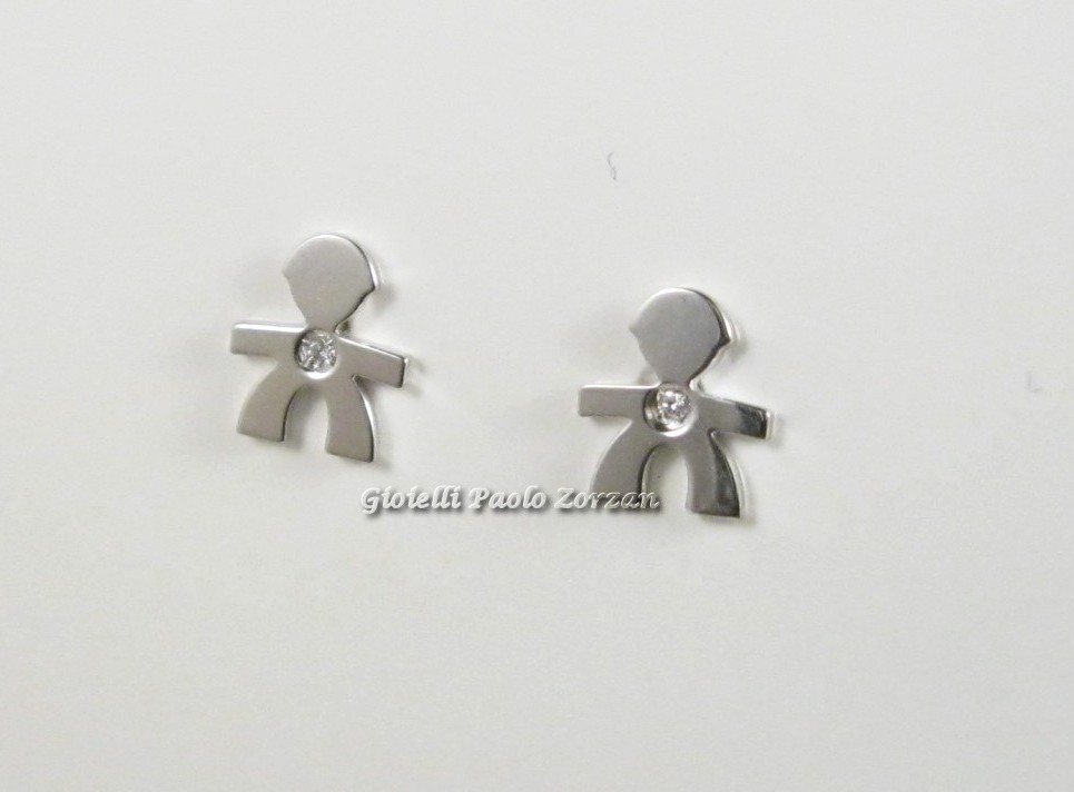 Paio orecchini Le Briciole Le Bebè Bimbo oro banco 18 Kt con diamante ct 0.003 Mod.LBB309